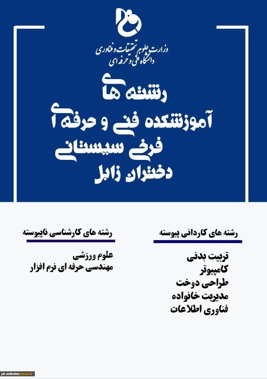 امتیاز دهید : پذیرش دانشجوی روزانه و نوبت دوم مقطع کارشناسی ناپیوسته در تنها دانشگاه مهارتی دولتی وابسته به وزارت علوم در دانشگاه فنی و حرفه ای استان سیستان وبلوچستان 2 دوشنبه 29 خرداد 1402 ساعت 7:55