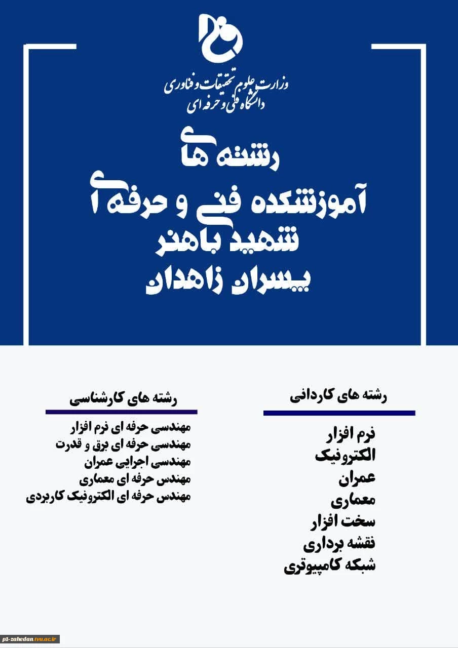 امتیاز دهید : پذیرش دانشجوی روزانه و نوبت دوم مقطع کارشناسی ناپیوسته در تنها دانشگاه مهارتی دولتی وابسته به وزارت علوم در دانشگاه فنی و حرفه ای استان سیستان وبلوچستان 5 دوشنبه 29 خرداد 1402 ساعت 7:55