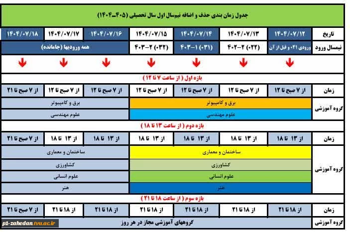 جدول زمان بندی حذف و اضافه 2