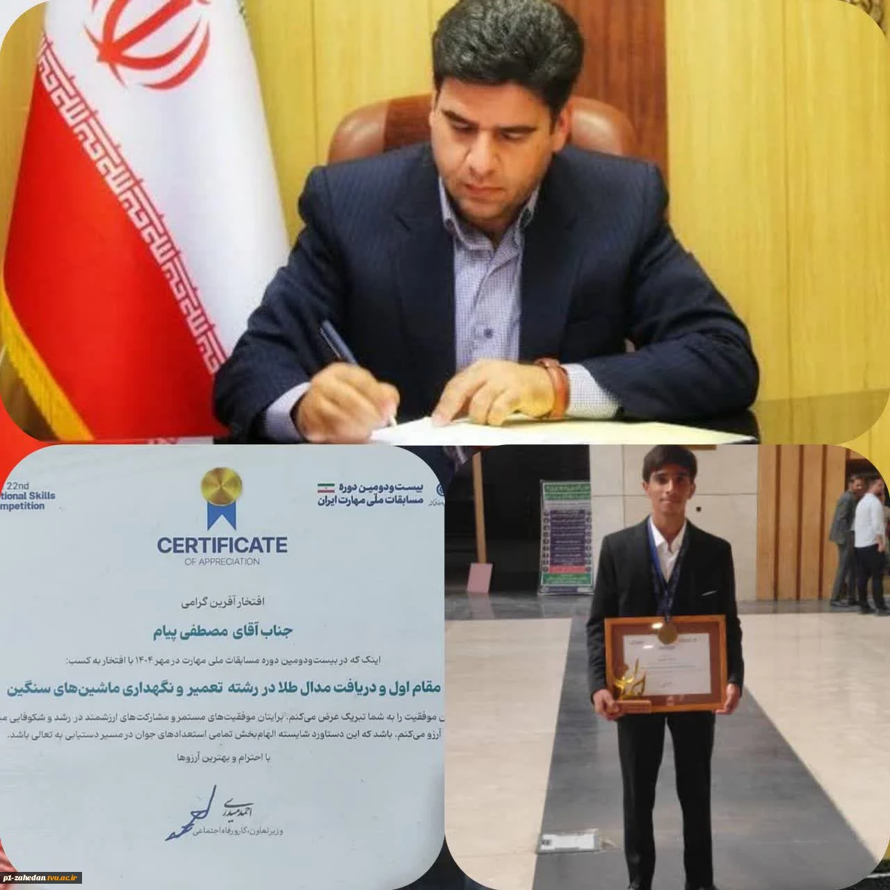 امتیاز دهید : پیام تبریک سرپرست آموزشکده پسران شماره یک زاهدان( شهید باهنر) واحد استانی سیستان وبلوچستان در پی درخشش دانشجوی آموزشکده شهید عارفی زاهدان 2 چهارشنبه 30 مهر 1404 ساعت 14:19
